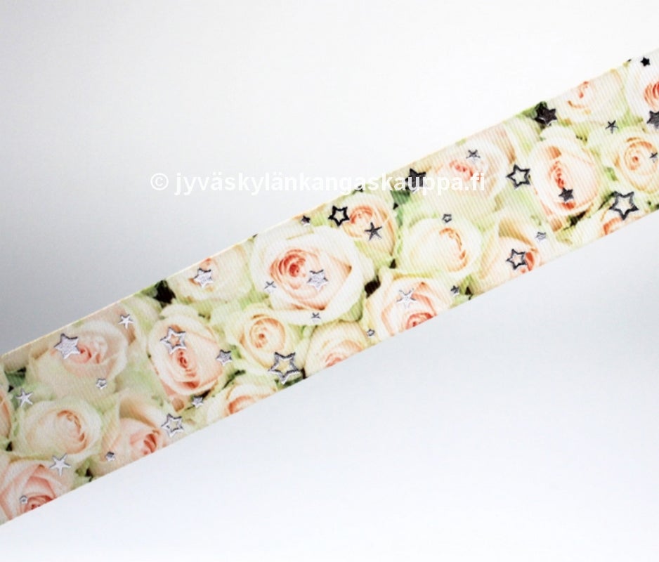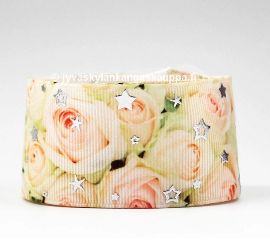 Nauhassa on kohokuvioituja glitter tähtiä.