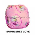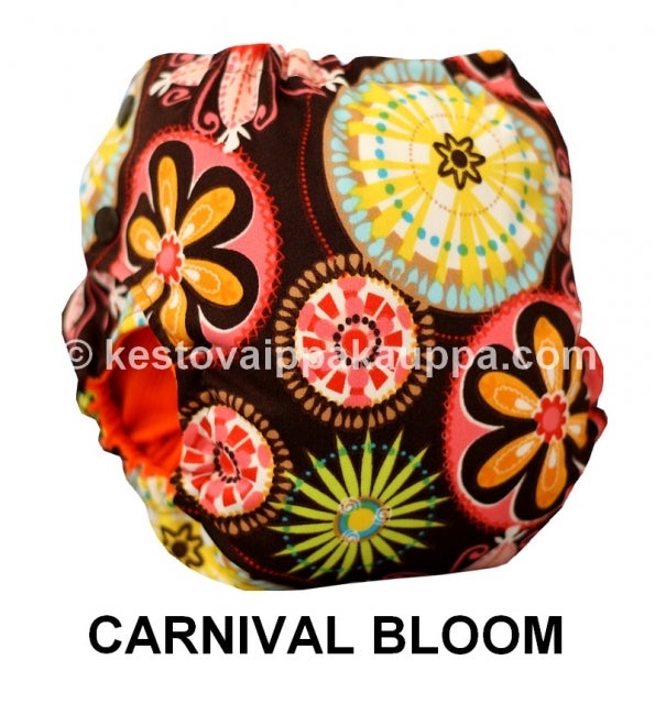 Hoito-ohje: Käytön jälkeen vaippa huuhdellaan (kakka irrotetaan tarvittaessa käsisuihkun avulla vessanpönttöön) ja jätetään odottamaan pesua, ei tarvitse liottaa. Pesu 40-60 asteessa (trikoiset 40, keinokuituiset 60 asteessa) kestovaipoille soveltuvalla pesuaineella (ei zeoliittia ja saippuaa alle 5%, käytä vain 1/3 suositellusta pesuainemäärästä) siivekkeiden tarrat suljettuina, jos kyseessä on tarrallinen vaippa. Vältä huuhtelu- ja valkaisuaineita. Saa rumpukuivattaa. Vaipan voi pestä perheen muun pyykin mukana. Pestään ennen ensimmäistä käyttökertaa.