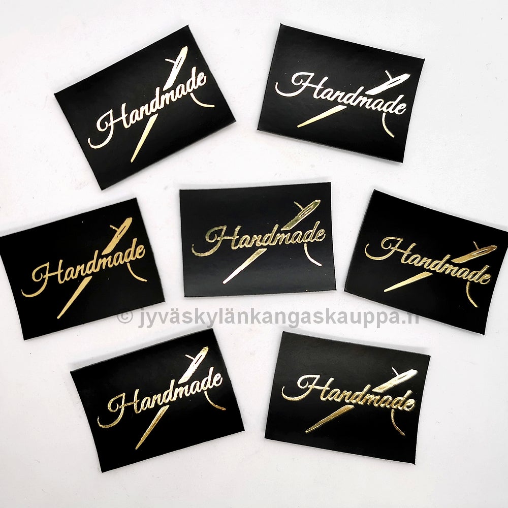 Keinonahkamerkki Handmade NEULA Musta + Kulta teksti.