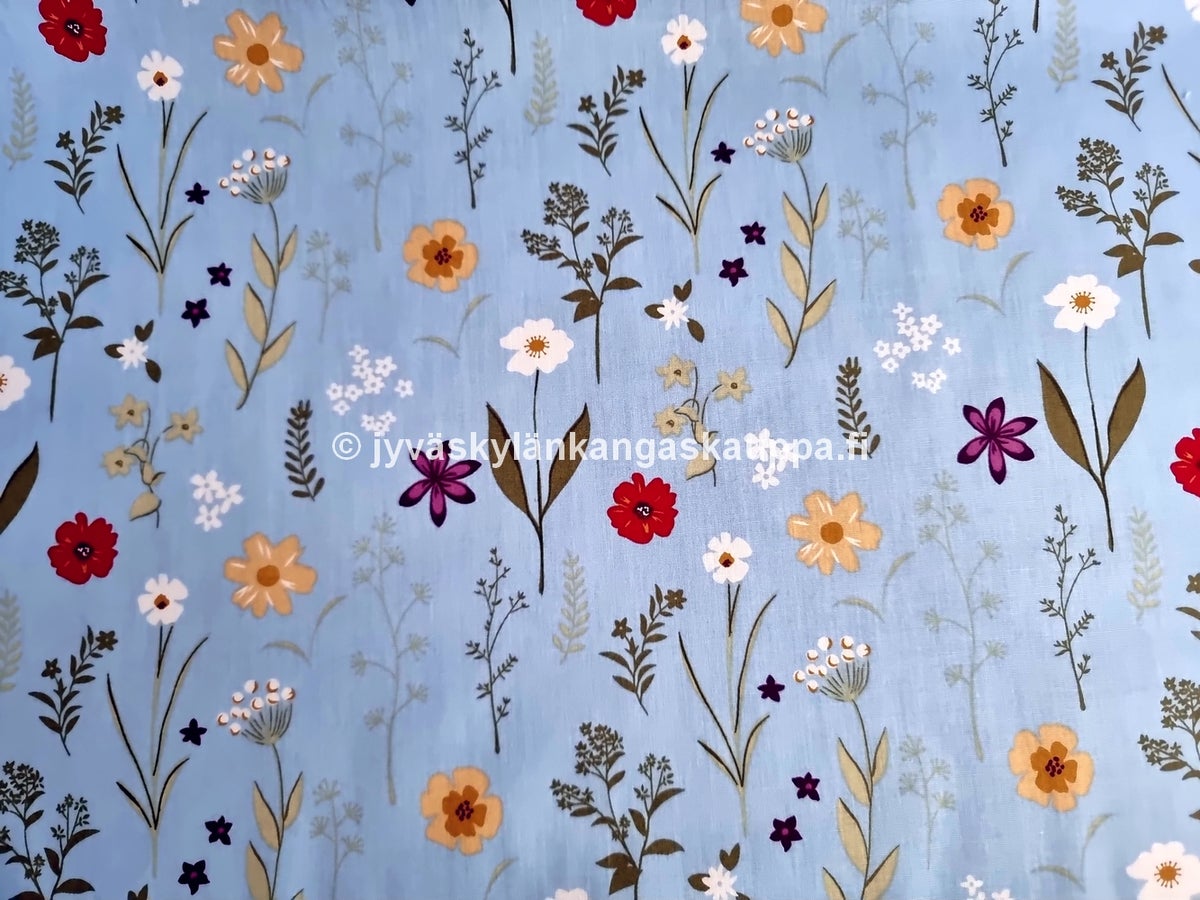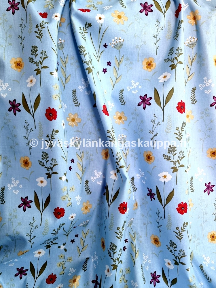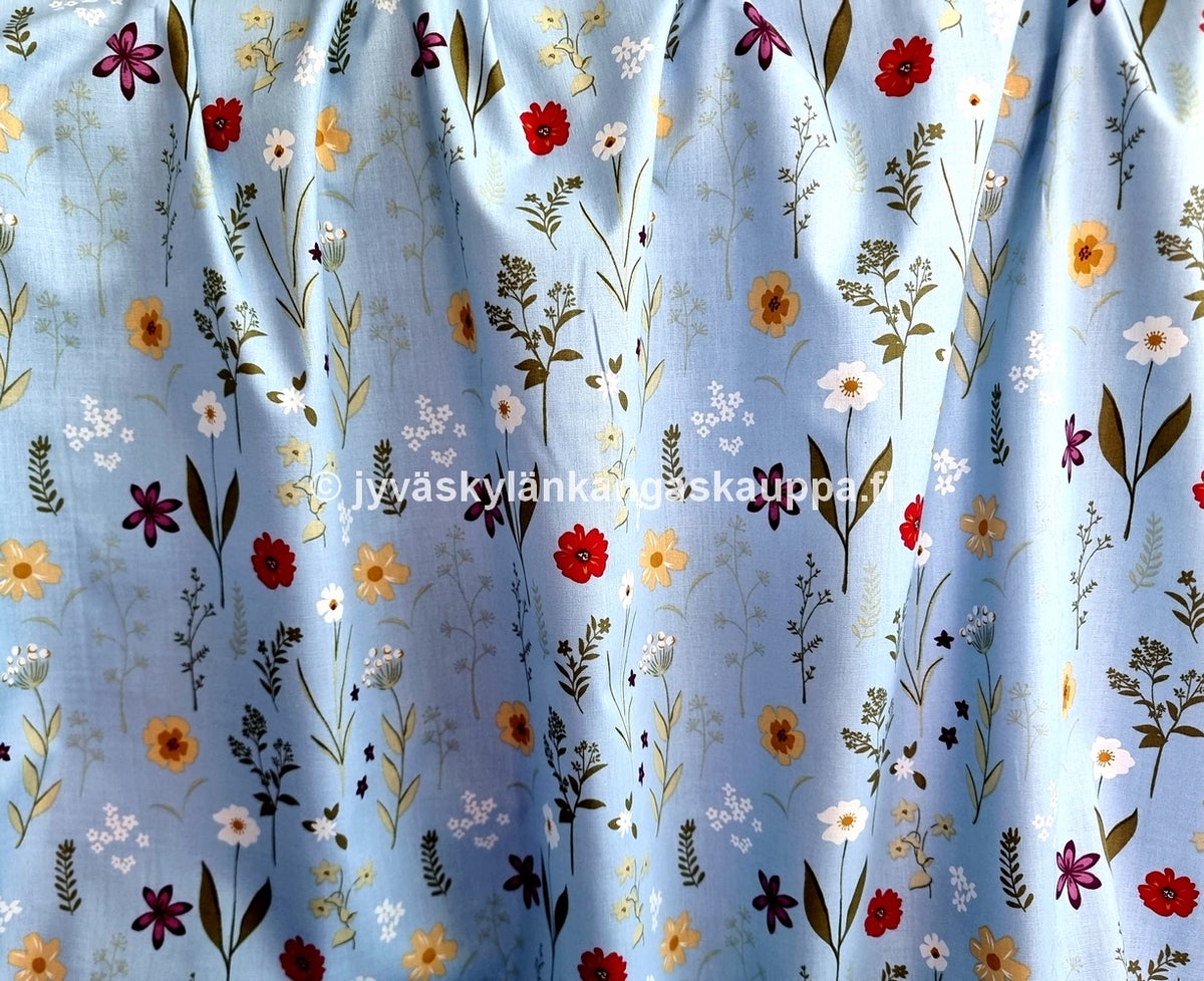 Puuvilla-Popliini Luonnonkukat Vaaleansininen