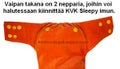 - UUTTA: Vaipan takaosassa on nepparit joihin voi kiinnittää KVK Sleepy lisäimun