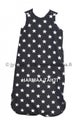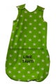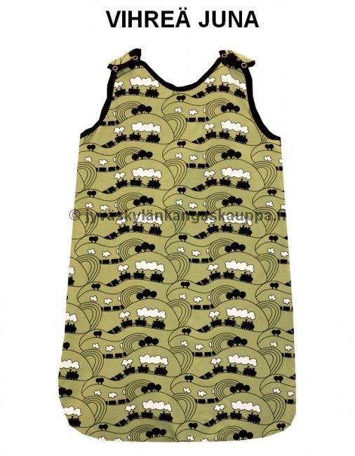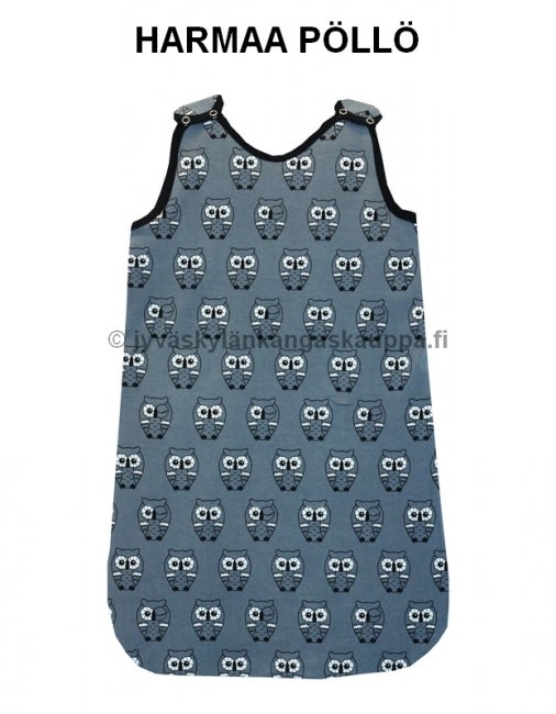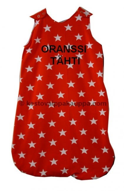 Vinkkejä: Unipussiin ei tarvitse pukea ylle kuin body, jos on kyseessä normaali huonelämpö. Lisää tai vähennä tarvittaessa vaatetusta. Yritä jättää lapsen jalkaterät paljaiksi – paljaiden jalkojen koskettaminen toisiin lisää turvallisuuden tunnetta. Lapsen voi nukuttaa sylissä tai rinnalle unipussissa ja siirtää sänkyyn herättämättä kylmän sängyn tuntuun. Siksipä suosittelen unipussia jo heti vastasyntyneelle. Vaipan voi vaihtaa esim. yöllä ottamatta unipussia lapselta pois päältä: avaa vain sivussa oleva vetoketju ja vaihda vaippa siten, että olkaimet ovat kiinni. Tarpeen tullen voit helposti sujauttaa harson tai pienen hoitoalustan vauvan ja unipussin väliin.