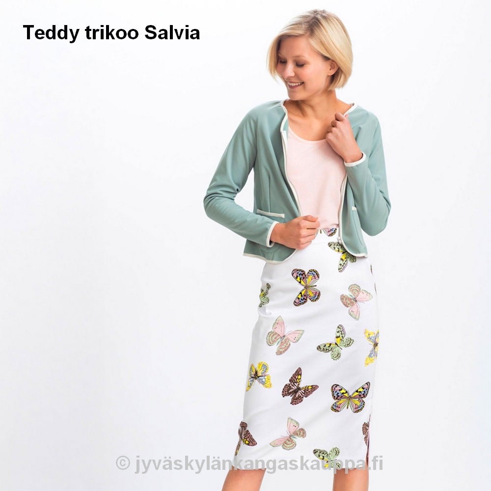 Ihanan pehmeä ja muhkea paksu trikoo, jossa nurjalla pehmeä ja lämmin teddyvuori.