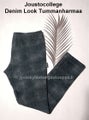 Farkkujoustocollege eli tavallinen joustocollege, jossa farkkukankaan näköinen painettu pinta.