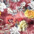 Digiprintti trikoo Water Colour Burgundy Flowers (30cm valmispala)