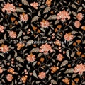 Digiprintti BAMBUTRIKOO Dusty Pink Floral Musta (1m valmispala, painovirhe)