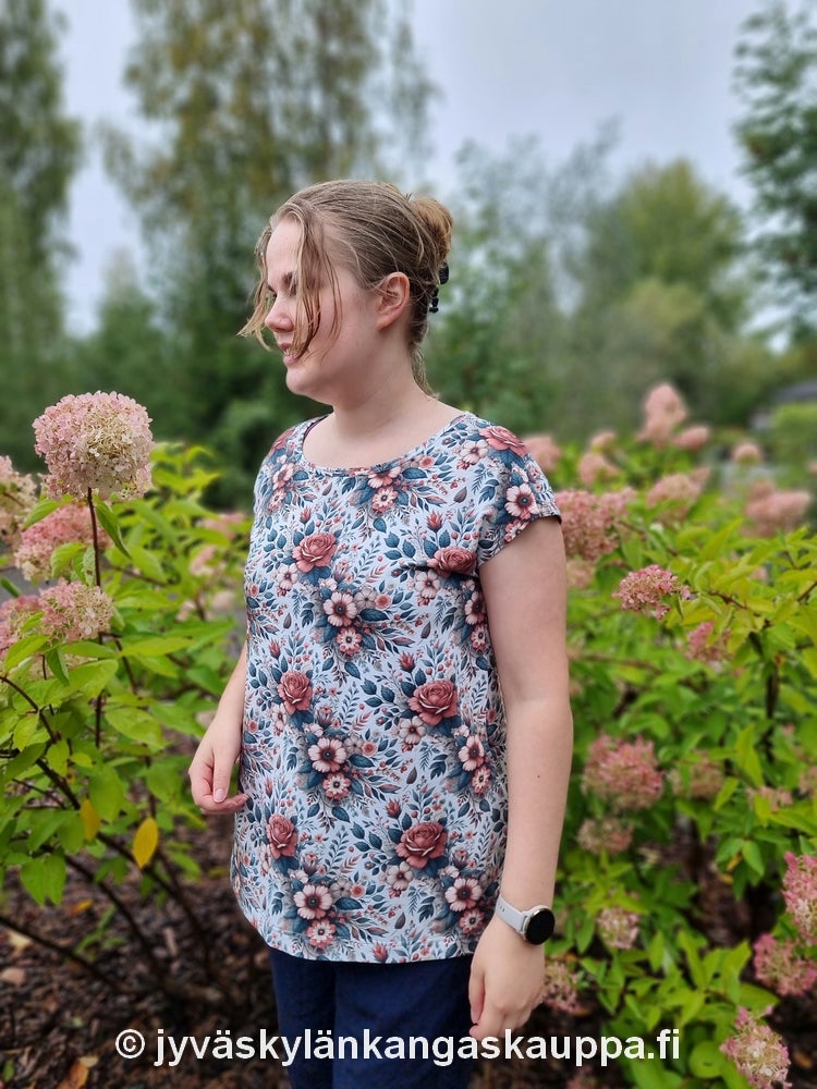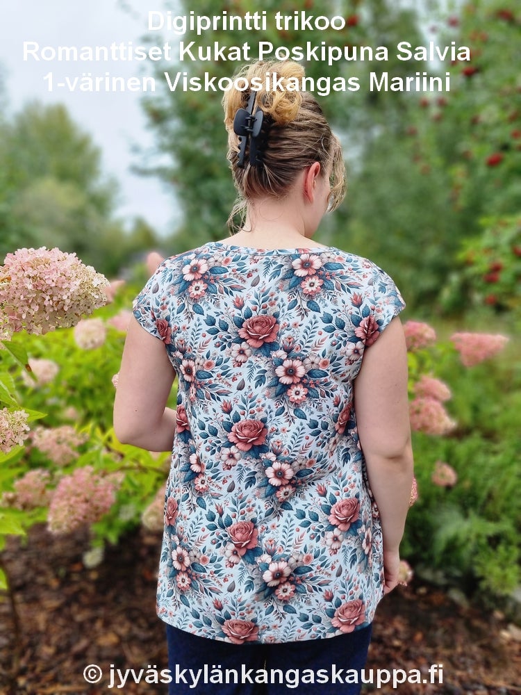 Digiprintti trikoo Romanttiset Kukat.