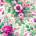 Vesiväreillä maalattuja kukkia, kauniit murretut sävyt.