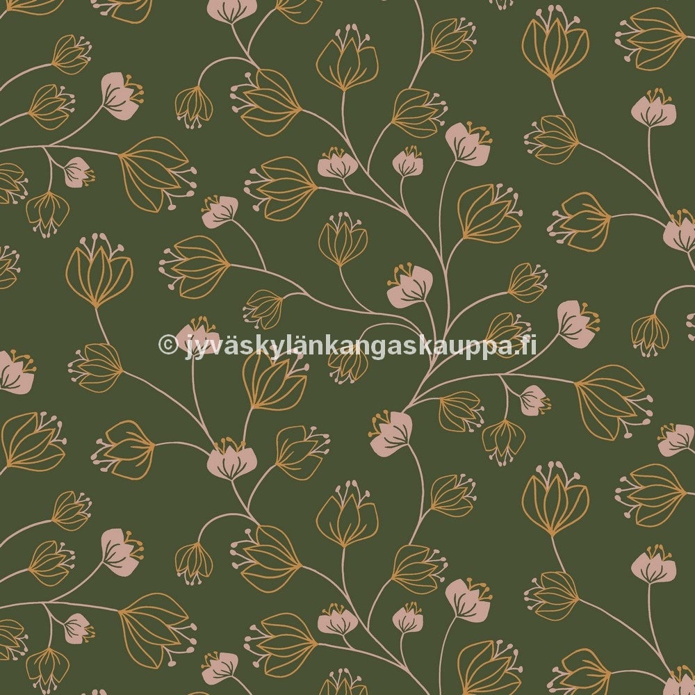 Trikoo kangas Flowers Green.