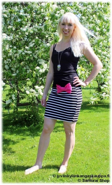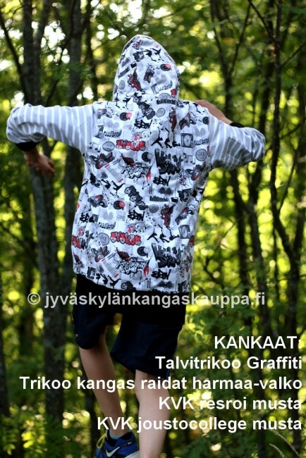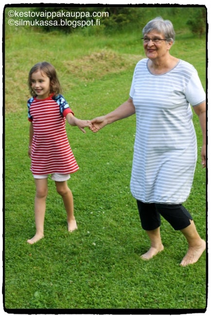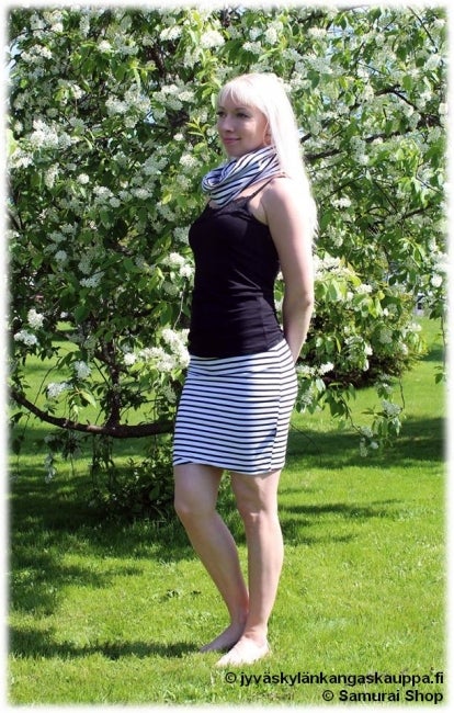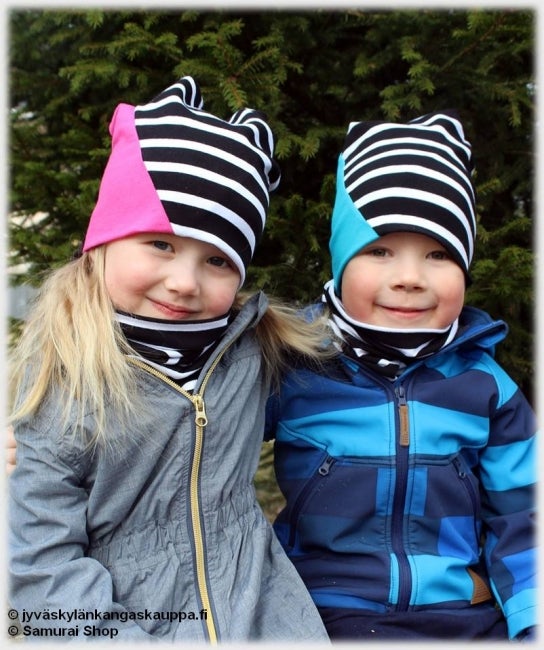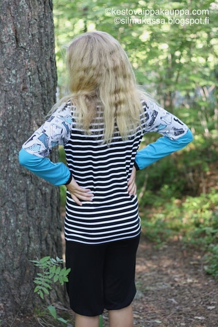 - Raidat on neulottu kankaaseen eli ei siis ole painettu kuosi (värit pysyvät paremmin kuin painetussa!)