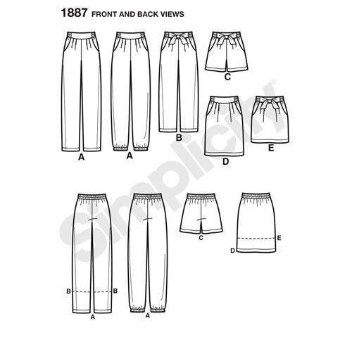 Misses' pants in two lengths with cuff variations, shorts and skirt in two lengths. Simplicity sewing pattern, Designs by Karen Z.
