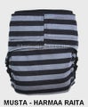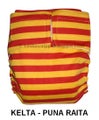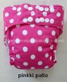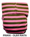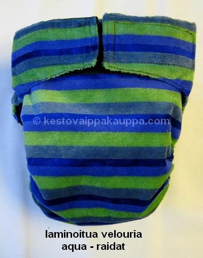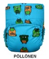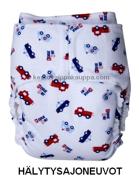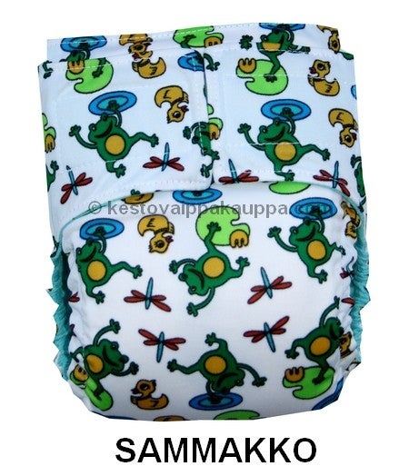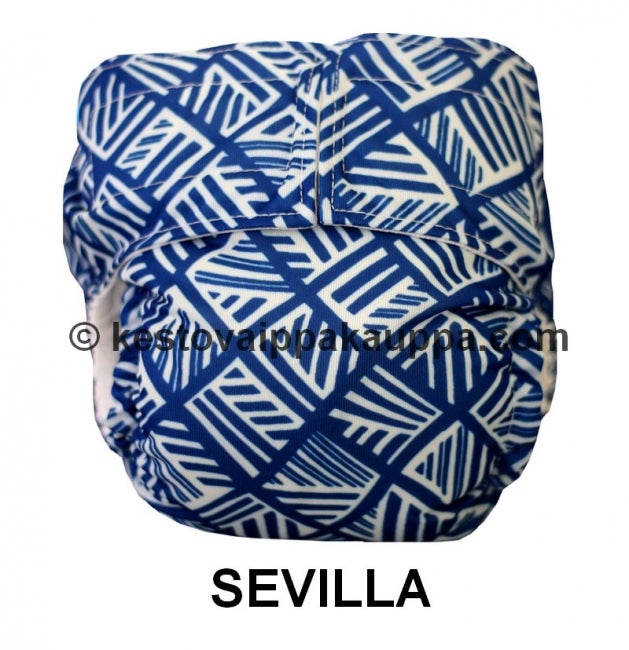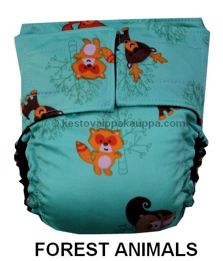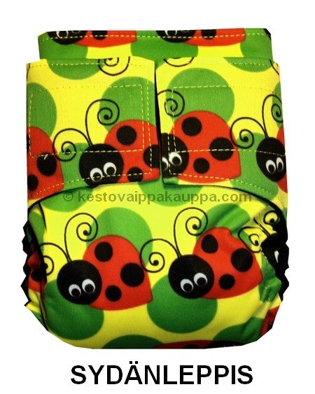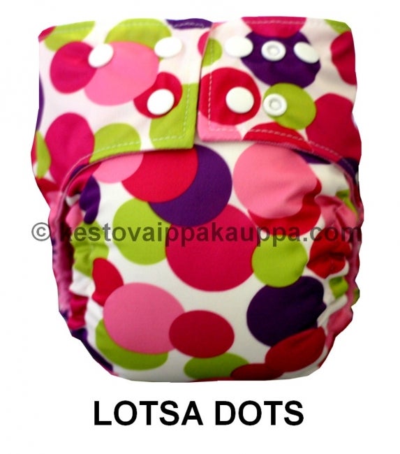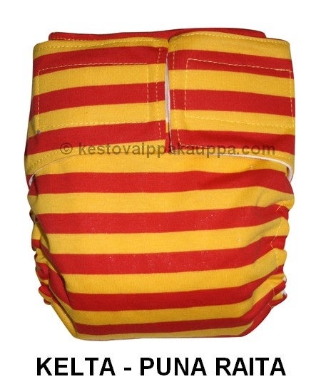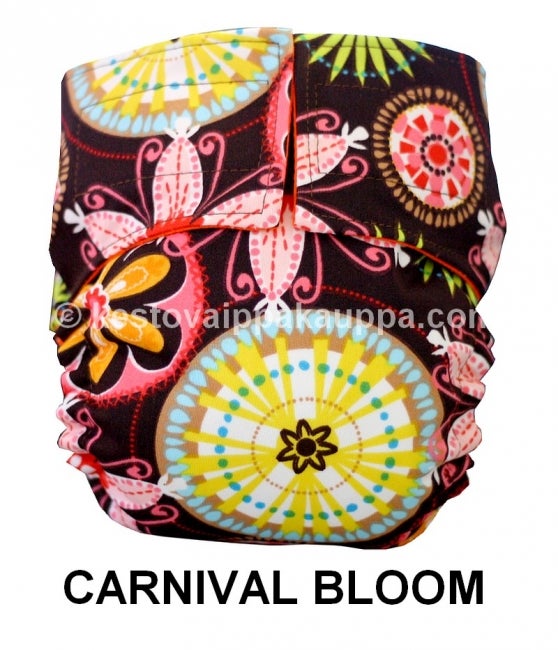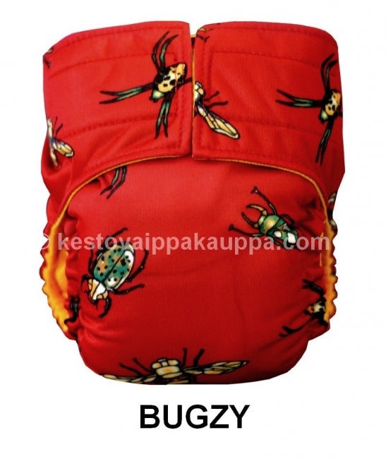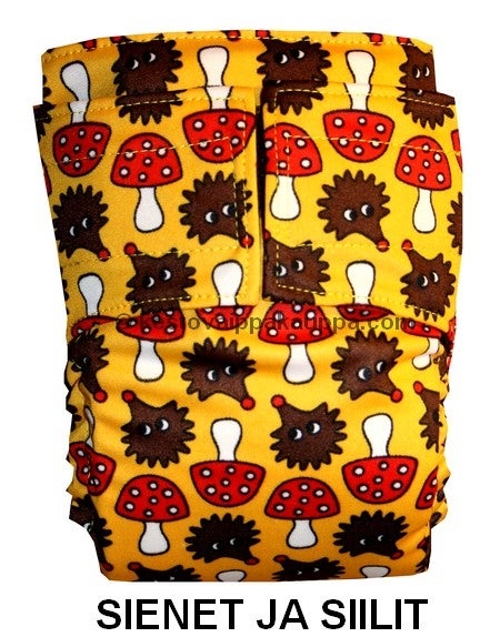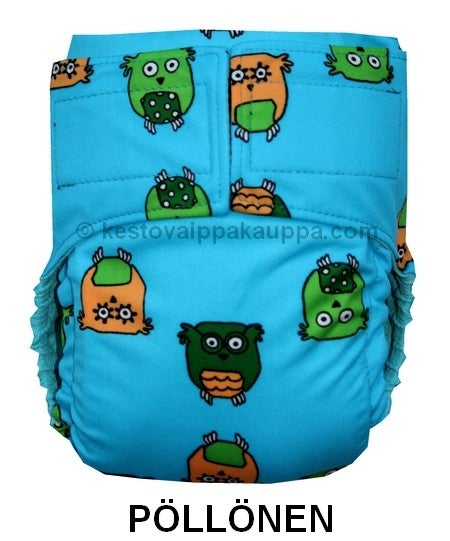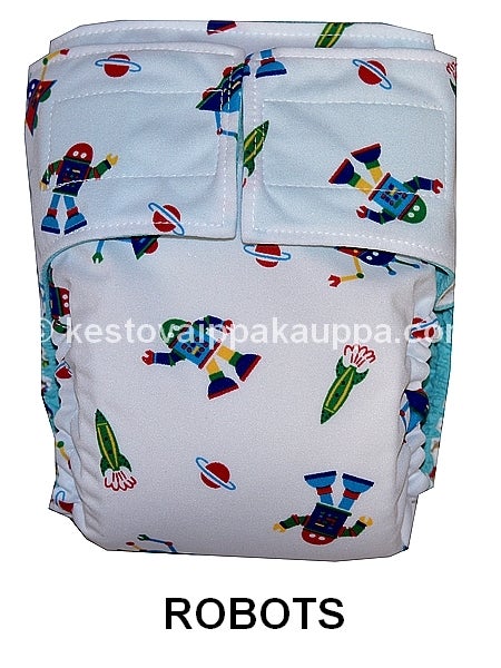 Hoito-ohje: Käytön jälkeen vaippa huuhdellaan (kakka irrotetaan tarvittaessa käsisuihkun avulla vessanpönttöön) ja jätetään odottamaan pesua, ei tarvitse liottaa. Pesu 40-60 asteessa (trikoiset 40, keinokuituiset 60 asteessa) kestovaipoille soveltuvalla pesuaineella (ei zeoliittia ja saippuaa alle 5%, käytä vain 1/3 suositellusta pesuainemäärästä) siivekkeiden tarrat suljettuina, jos kyseessä on tarrallinen vaippa. Vältä huuhtelu- ja valkaisuaineita. Saa rumpukuivattaa. Vaipan voi pestä perheen muun pyykin mukana. Pestään ennen ensimmäistä käyttökertaa.